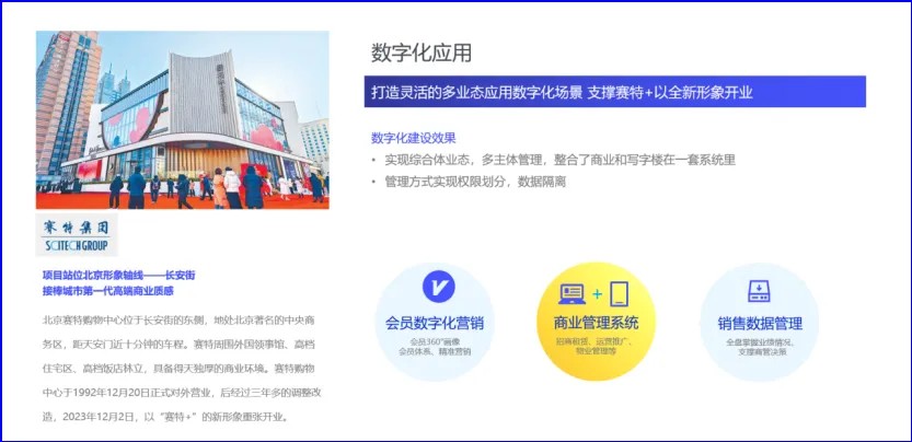 ?多業(yè)態(tài)整合與靈活管理?:靈活的多業(yè)態(tài)應用數(shù)字化場景將商業(yè)和寫字樓整合在一套系統(tǒng)內(nèi),同時實現(xiàn)了權限劃分和數(shù)據(jù)隔離。這一創(chuàng)新舉措不僅提升了管理效率,還為賽特+的業(yè)務拓展提供了更多可能性。